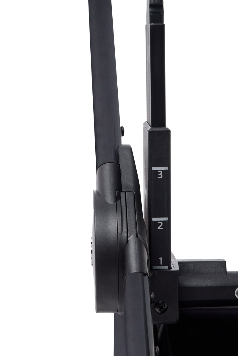 удобная ручка-переноска регулируется в 4 положениях. В нижнем положении ручка выступает стопором, предотвращающим укачивание.
