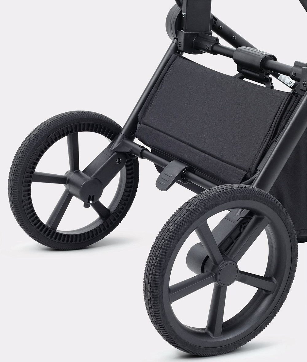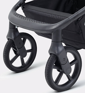 Супермягкая амортизация: коляска «плывёт по дороге», помогая продлить сон ребёнка на улице и делая управление лёгким и приятным.