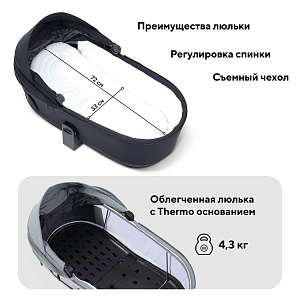 Термолюлька: дно выполнено из специального материала — лёгкое, прочное и термоизолирующее. Обеспечивает комфорт в любую погоду: летом не перегревается, сохраняет циркуляцию воздуха; зимой сохраняет тепло. Подойдёт как для прогулок, так и как временная кроватка при посещении гостей.