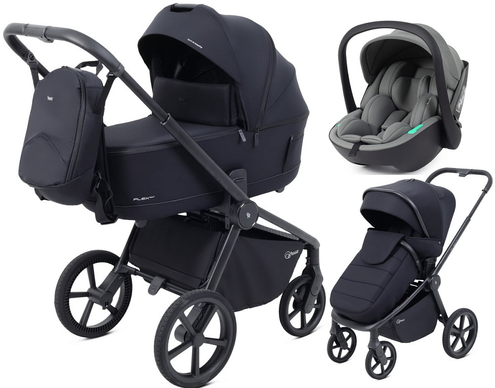 Детская коляска Rant Flex Therm Soft 4 в 1 с автокреслом Miro Beige и базой Midnight Black