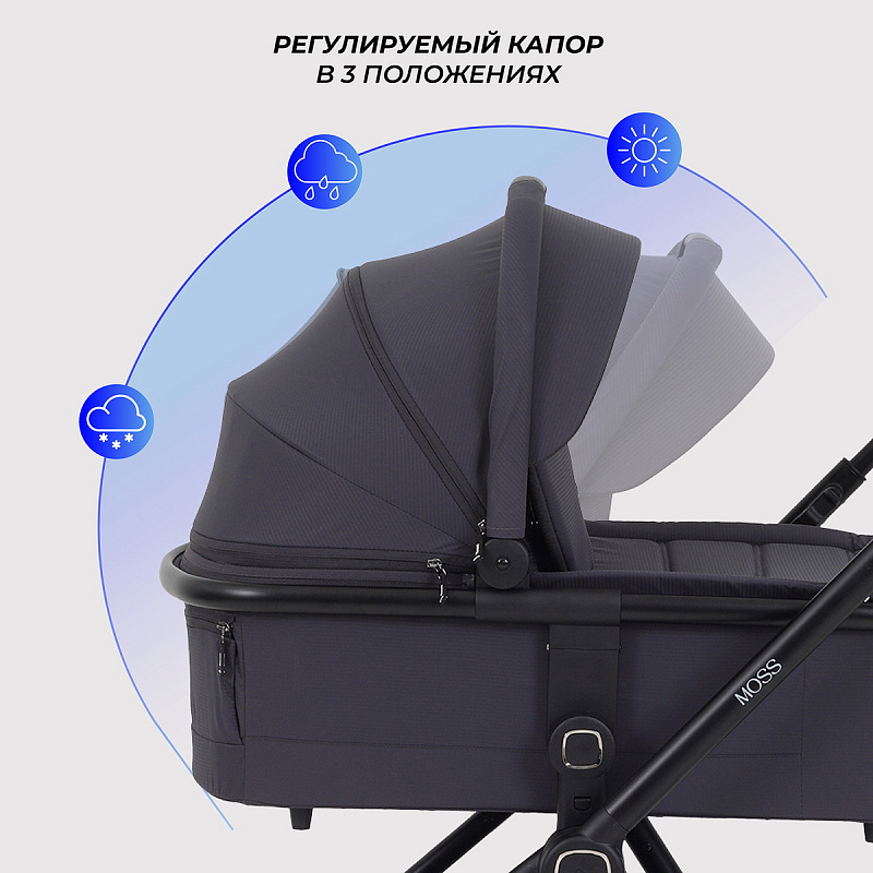 - капюшоны обоих блоков комплектованы внушительными козырьками от солнца и дождя, которые при необходимости можно отстегнуть