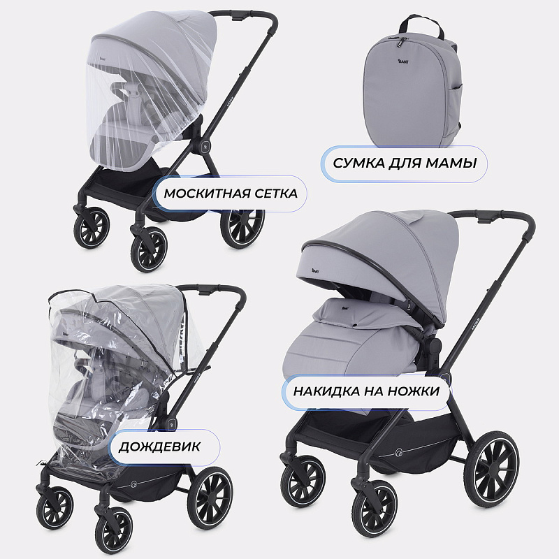 - модель дополнена богатой комплектацией: стильным рюкзаком для мамы, москитной сеткой, дождевиком