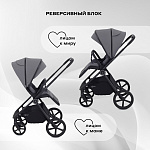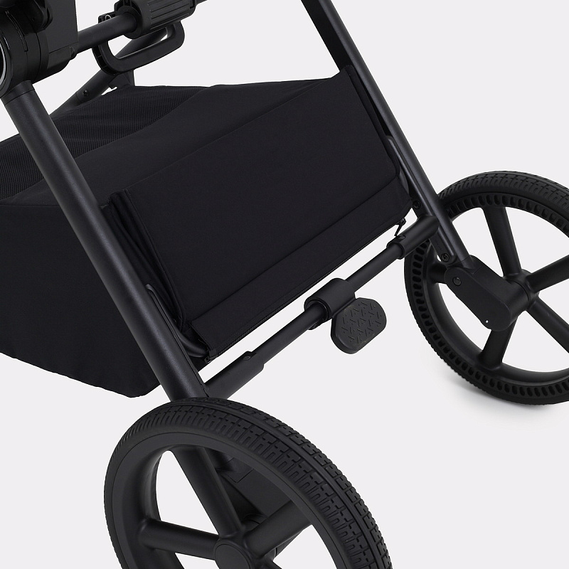 коляска дополнена функцией автоскладывания - просто нажмите кнопку и слегка подтолкните подножку в обратную сторону. Модель складывается автоматически сразу вместе с блоком, независимо от его положения (по ходу/против хода).
