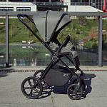 коляска дополнена функцией автоскладывания - просто нажмите кнопку и слегка подтолкните подножку в обратную сторону. Модель складывается автоматически сразу вместе с блоком, независимо от его положения (по ходу/против хода).