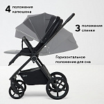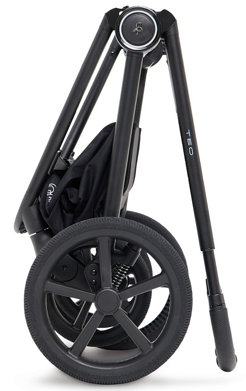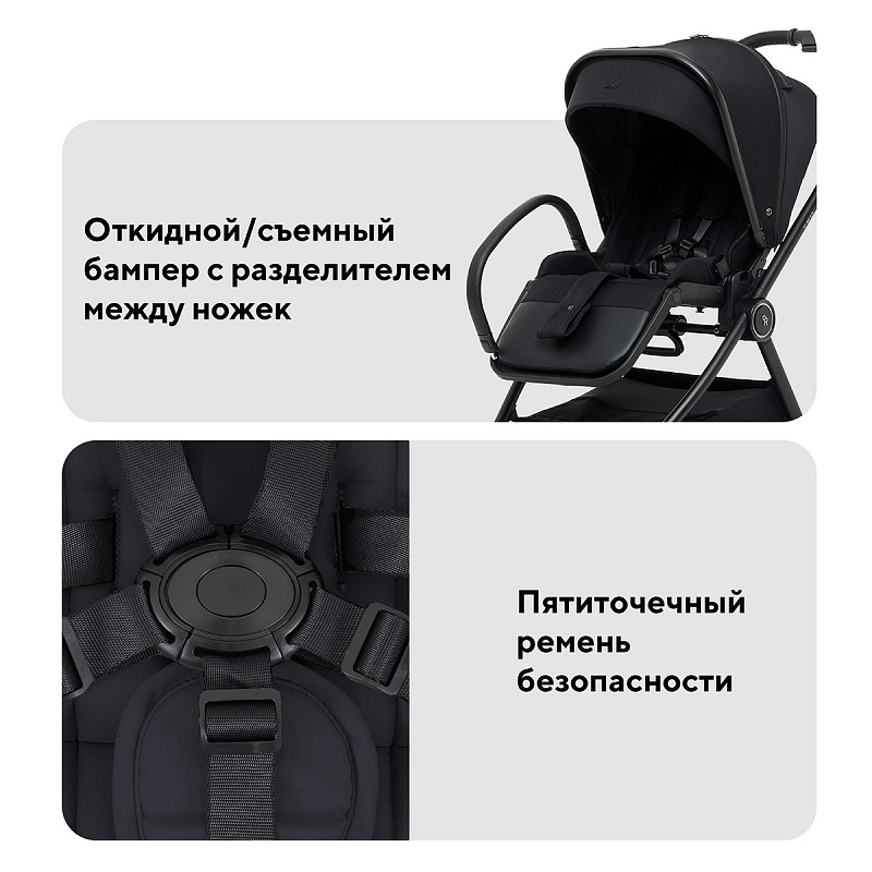 коляска дополнена функцией автоскладывания - просто нажмите кнопку и слегка подтолкните подножку в обратную сторону. Модель складывается автоматически сразу вместе с блоком, независимо от его положения (по ходу/против хода).