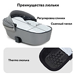 термолюлька литая. Особый материал, из которого выполнен блок, идеально поддерживает микроклимат внутри: на улице жарко - в люльке прохладно, на улице холодно - в люльке тепло. В то же время высокотехнологичный материал люльки характеризуется небольшим весом и ударопрочностью.