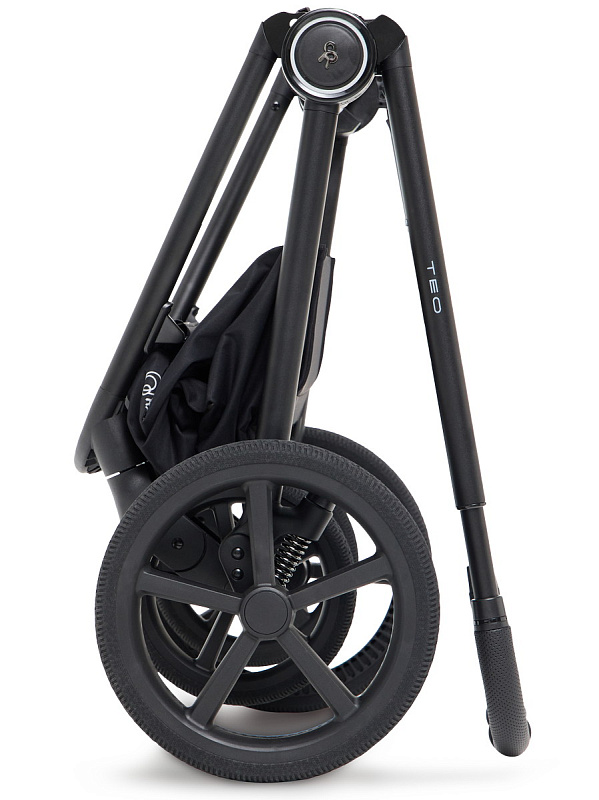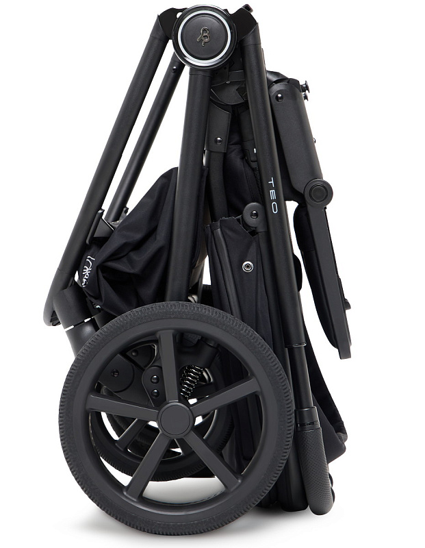 коляска дополнена функцией автоскладывания - просто нажмите кнопку и слегка подтолкните подножку в обратную сторону. Модель складывается автоматически сразу вместе с блоком, независимо от его положения (по ходу/против хода).