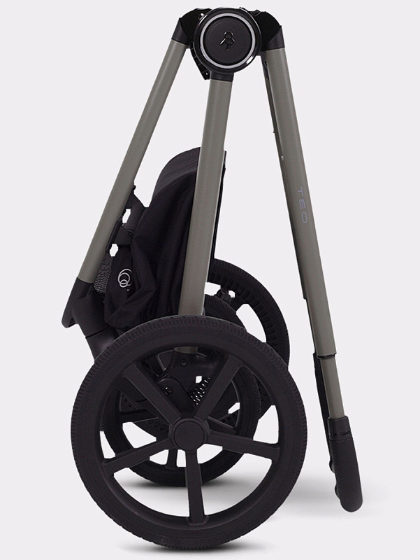 коляска дополнена функцией автоскладывания - просто нажмите кнопку и слегка подтолкните подножку в обратную сторону. Модель складывается автоматически сразу вместе с блоком, независимо от его положения (по ходу/против хода).