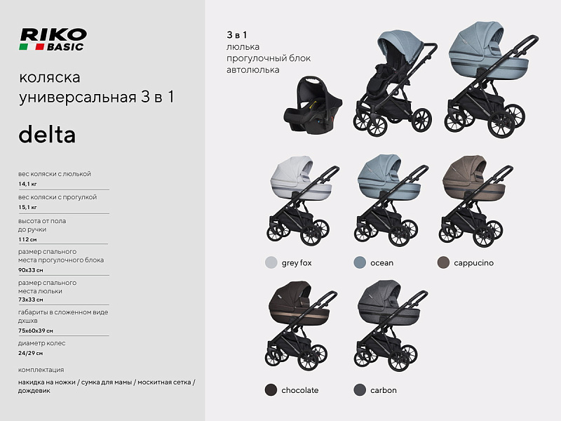 Детская коляска Riko Basic Delta 3 в 1 05 Carbon