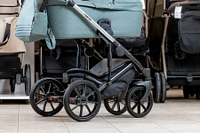 дополнительная регулируемая амортизация, расположенная в стойках, сделает ход коляски жестче или мягче (в зависимости от веса ребенка и типа дороги)
