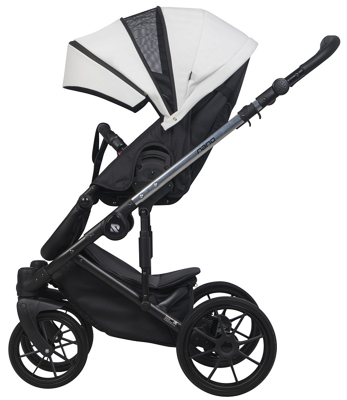 дополнительная регулируемая амортизация, расположенная в стойках, сделает ход коляски жестче или мягче (в зависимости от веса ребенка и типа дороги)