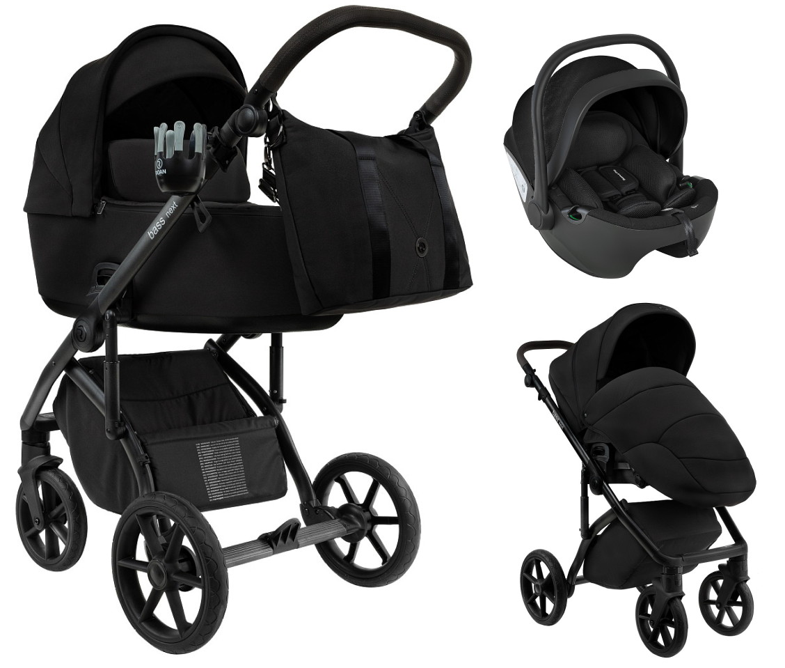 Детская коляска Roan Bass Next 2.0 3 в 1 с автокреслом Pituso Baesa Pro Black BSN/40/2 Caviar Black/Black/руч.Black