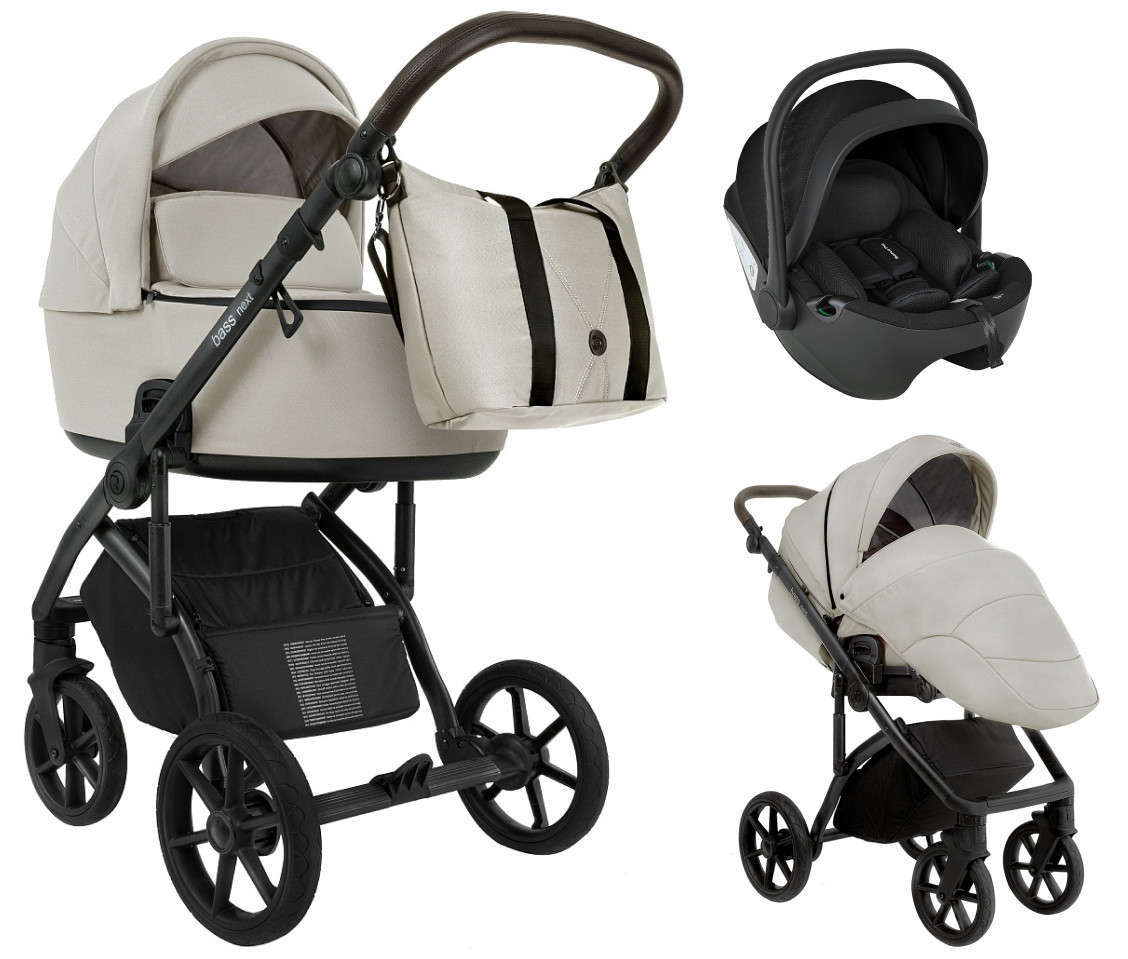 Детская коляска Roan Bass Next 2.0 3 в 1 с автокреслом Pituso Baesa Pro Black BSN/45/2 Marzipan/Black/руч.Cappuccino(2 места)