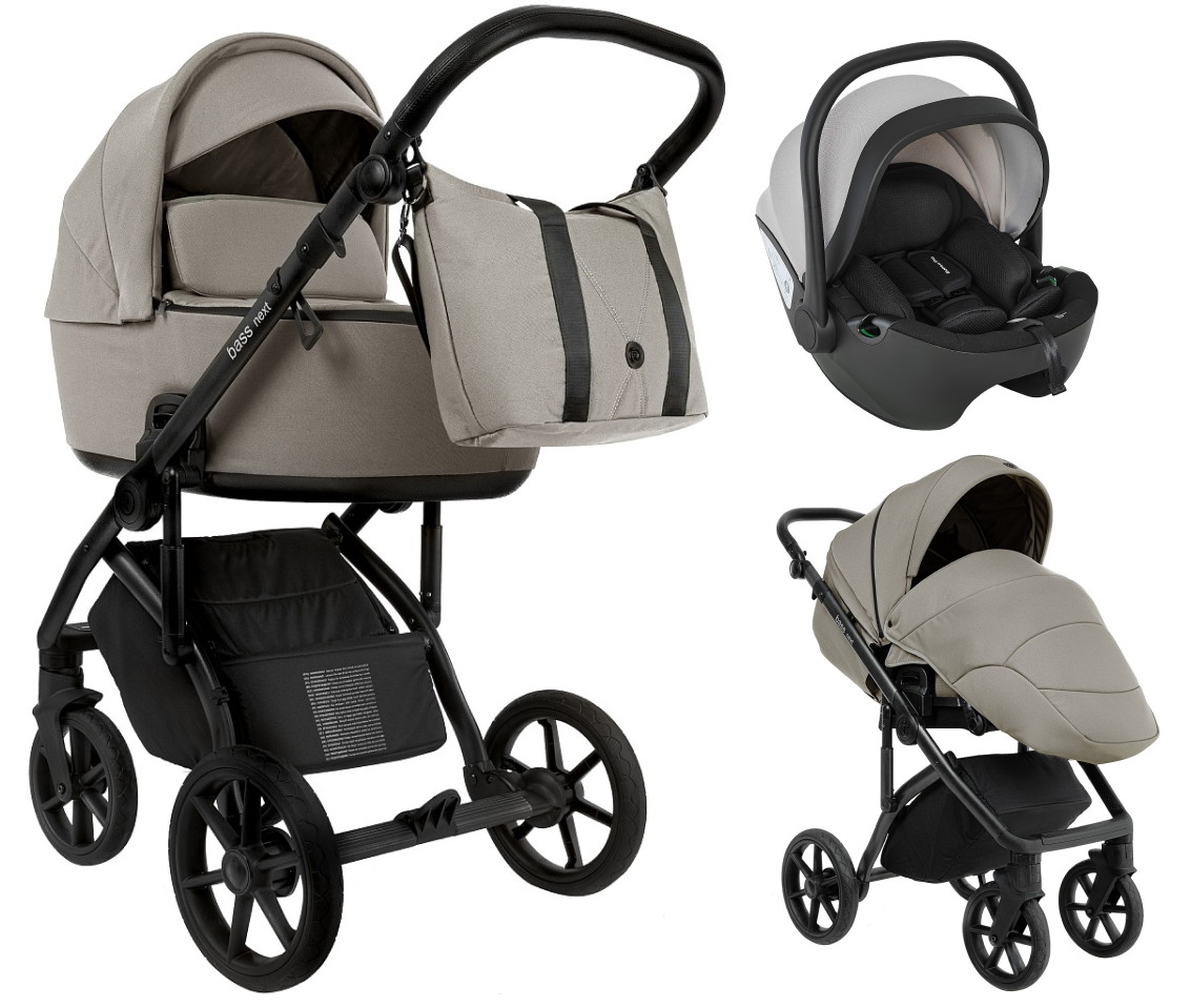 Детская коляска Roan Bass Next 2.0 3 в 1 с автокреслом Pituso Baesa Pro Black,Beige Canopy BSN/41/2 Hazel/Black/руч.Black