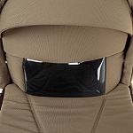 Прогулочный блок имеет отдельный функциональный капор, который можно снять. В капоре есть дополнительный отсек для увеличения покрытия, также есть дополнительный козырёк.