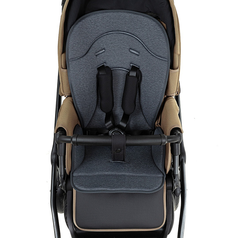 Прогулочный блок имеет пятиточечные ремни безопасности и бампер-ограничитель с отделкой из экокожи. Бампер можно отсоединить с одной стороны и просто откинуть для удобства посадки ребенка.