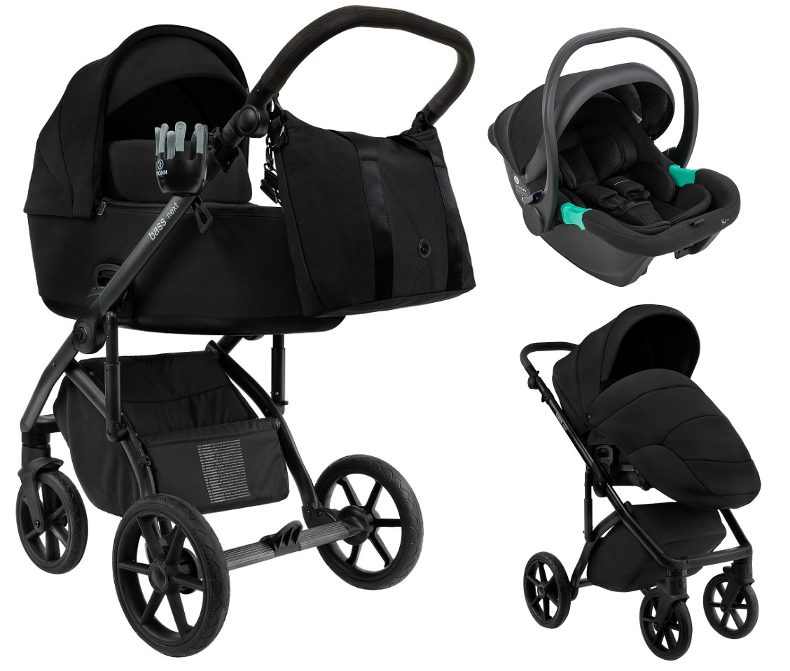 Детская коляска Roan Bass Next 2.0 3 в 1 с автокреслом Pituso Santiso Pro Black BSN/40/2 Caviar Black/Black/руч.Black