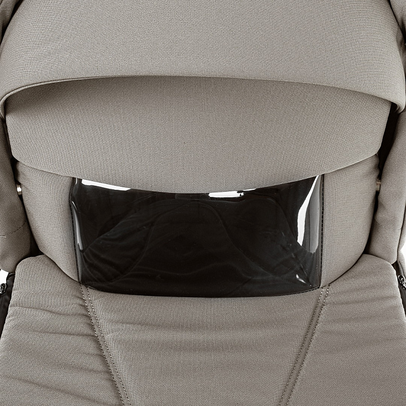 Прогулочный блок имеет отдельный функциональный капор, который можно снять. В капоре есть дополнительный отсек для увеличения покрытия, также есть дополнительный козырёк.