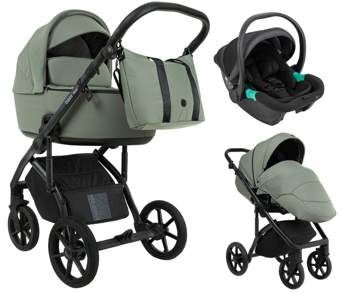 Детская коляска Roan Bass Next 2.0 3 в 1 с автокреслом Pituso Santiso Pro Black BSN/43/2 Sage Green/Black/руч.Black