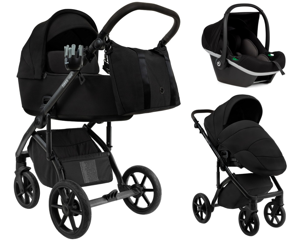 Детская коляска Roan Bass Next 2.0 3 в 1 с автокреслом Tutis Elo Black BSN/40/2 Caviar Black/Black/руч.Black