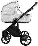 Накидка на люльку имеет дополнительный отворот со смотровым окном, сам отворот полностью закрывает ребенка от непогоды и крепится за счёт магнитов.