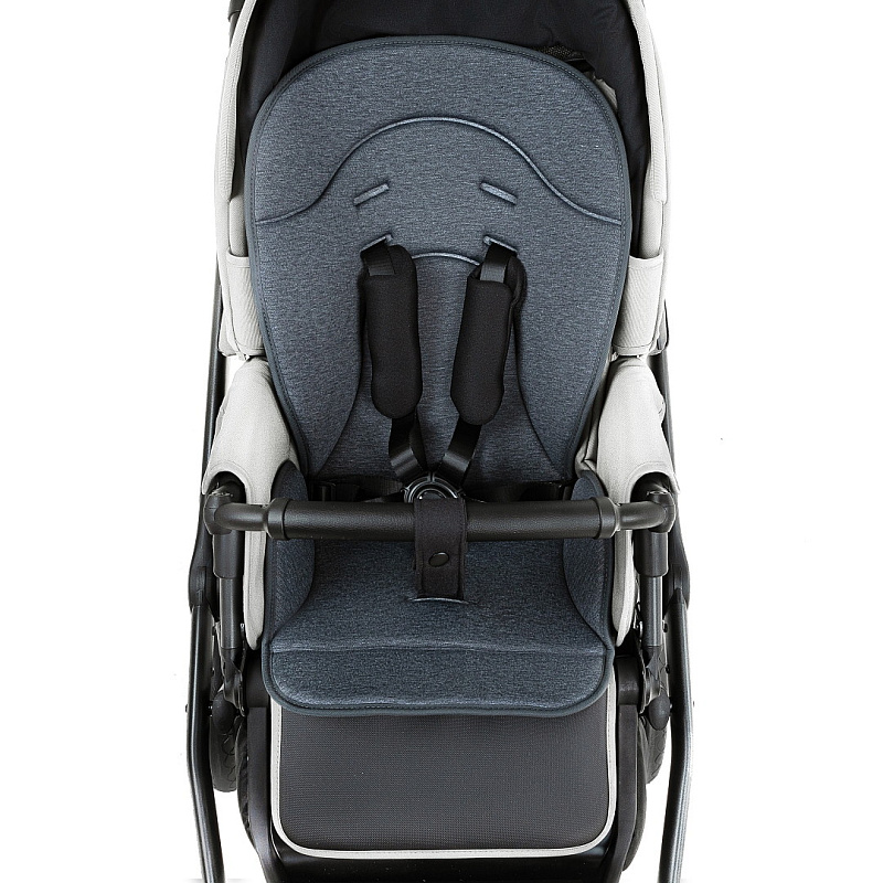 Прогулочный блок имеет пятиточечные ремни безопасности и бампер-ограничитель с отделкой из экокожи. Бампер можно отсоединить с одной стороны и просто откинуть для удобства посадки ребенка.