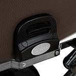 Специальный предохранитель не даст случайно сложить раму с ребенком, также поможет при размещении коляски в маленьком лифте.