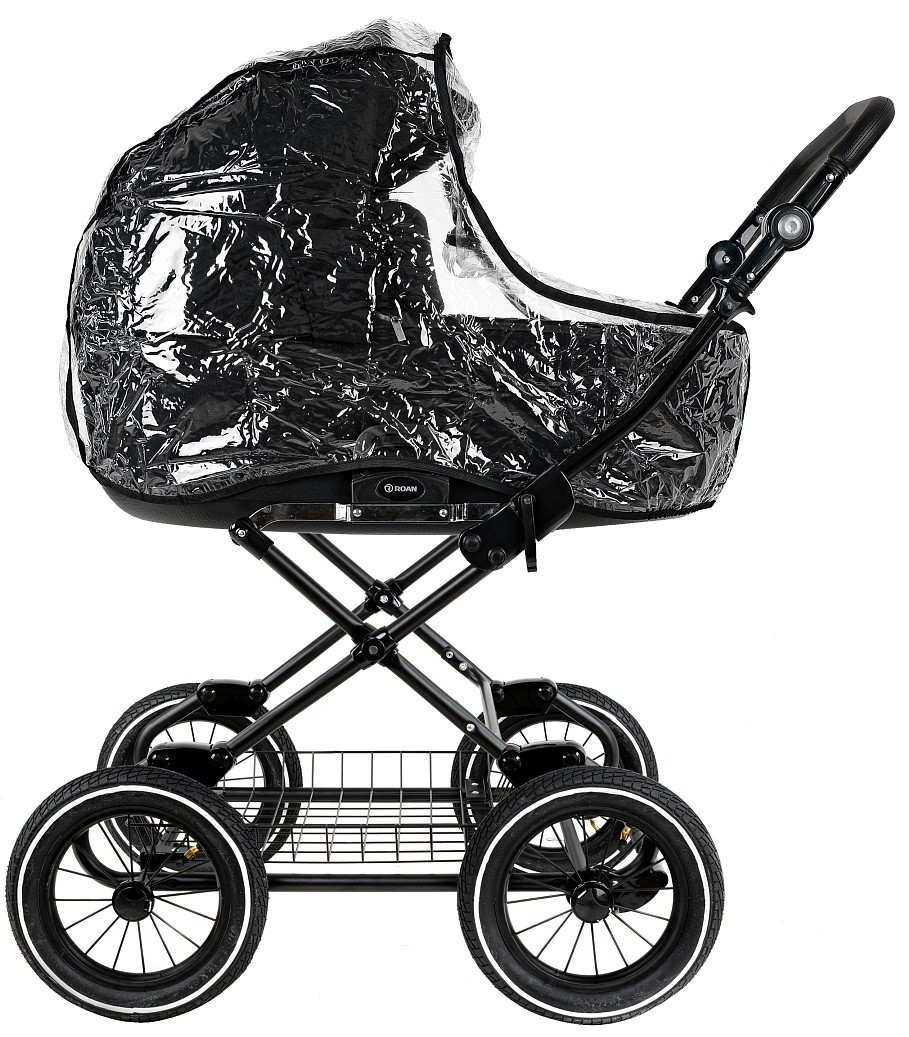 Накидка на люльку имеет дополнительный отворот со смотровым окном, сам отворот полностью закрывает ребенка от непогоды и крепится за счёт магнитов.