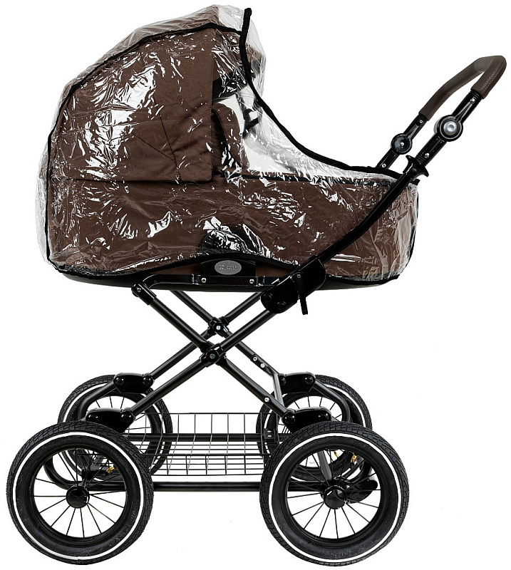 Накидка на люльку имеет дополнительный отворот со смотровым окном, сам отворот полностью закрывает ребенка от непогоды и крепится за счёт магнитов.