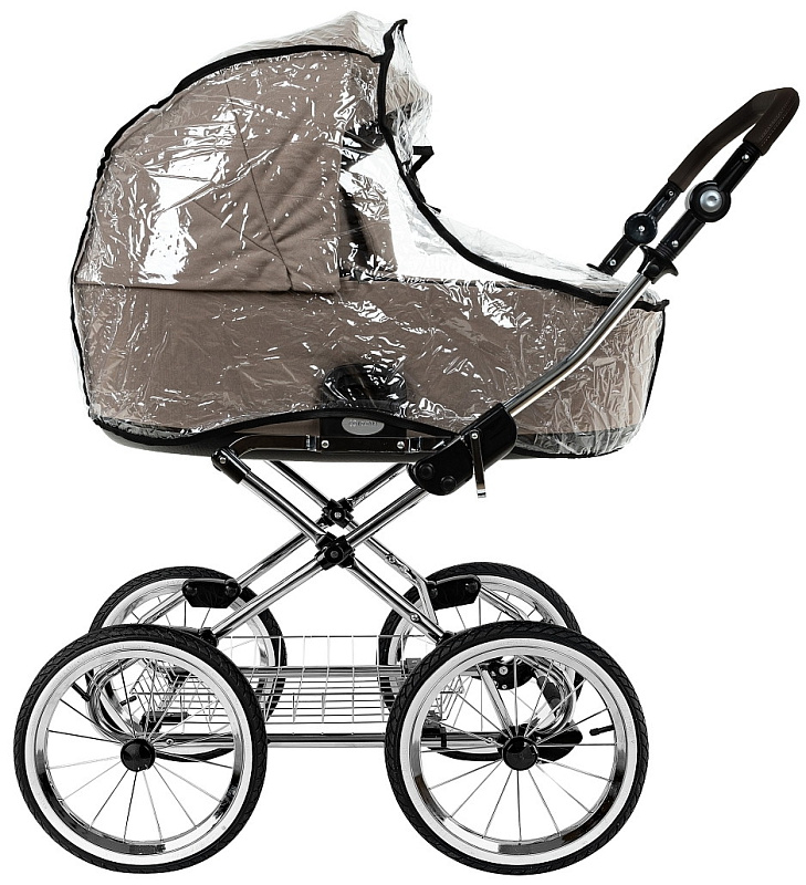 Накидка на люльку имеет дополнительный отворот со смотровым окном, сам отворот полностью закрывает ребенка от непогоды и крепится за счёт магнитов.