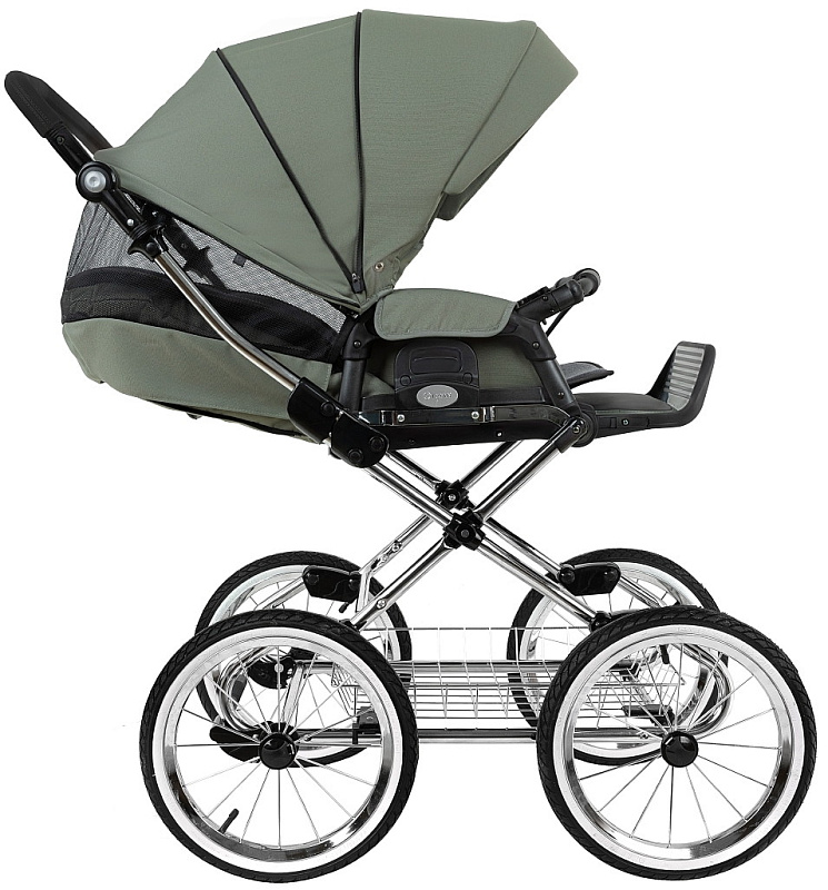 Главное достоинство такой рамы, что при движении по труднопроходимой местности колеса не вибрируют, коляска движется очень легко, а идеальная амортизация, основанная на кулисах, закрепленных в четырех точках, обеспечивает хороший сон для ребенка.