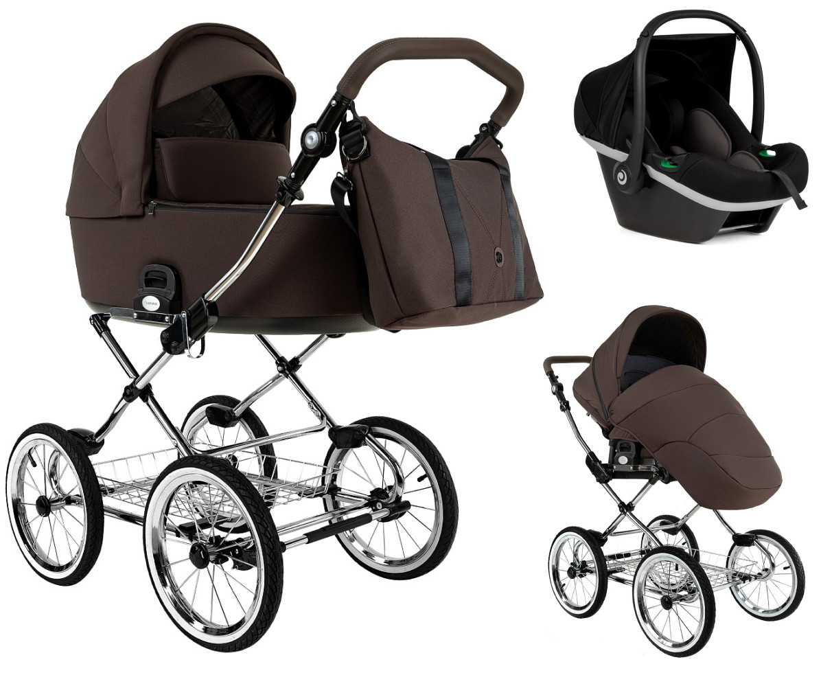 Детская коляска Roan Bass Next Classic d14 2.0 3 в 1 с автокреслом Tutis Elo Black BSNC/93/2 Turkish Coffe/Black/руч.Cappuccino