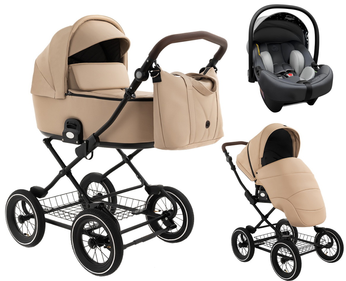 Детская коляска Roan Bass Next Classic Кожа d12 3 в 1 с автокреслом Elo Lux EduSky Grey RCL302/1 CaramelНет оценокХарактеристики