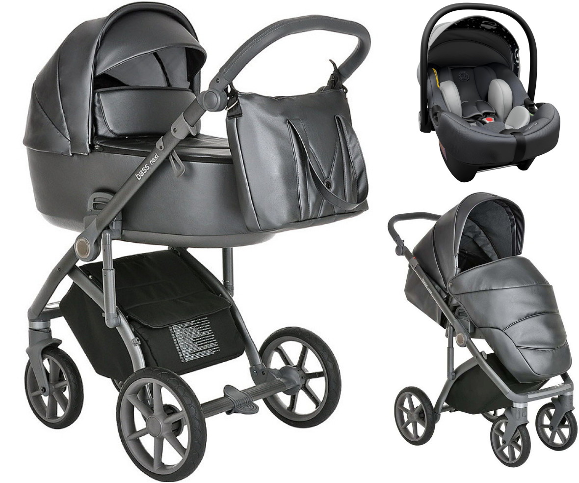 Детская коляска Roan Bass Next Кожа 3 в 1 с автокреслом Tutis Elo Lux EduSky Grey RN083/1 Graphite Pearl