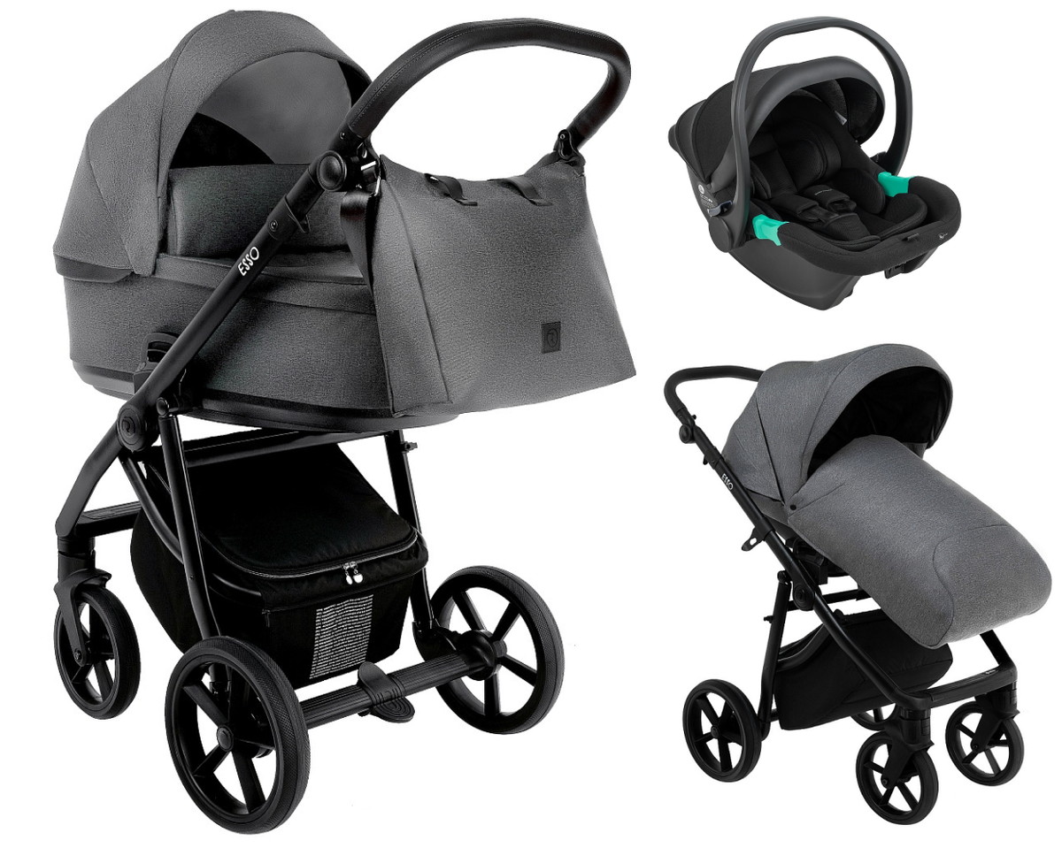 Детская коляска Roan Esso 2025 3 в 1 с автокреслом Pituso Santiso Pro Black ESS114/1 Grey/Black