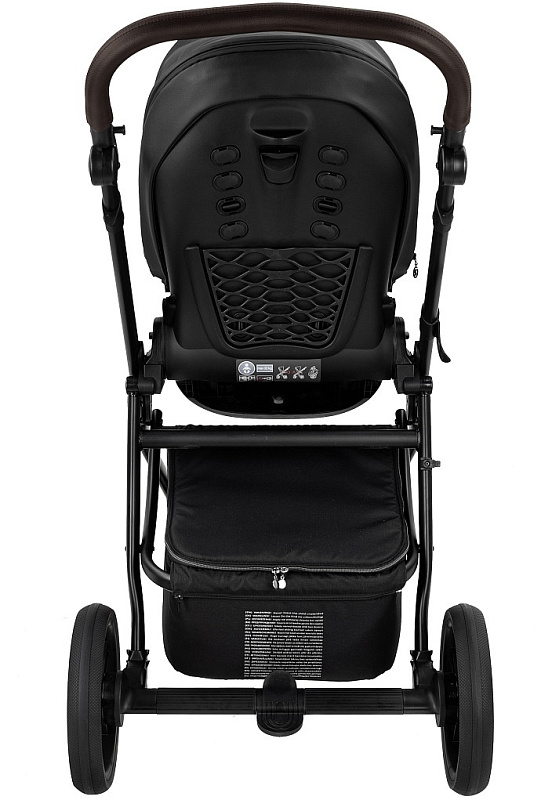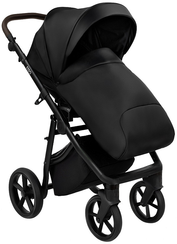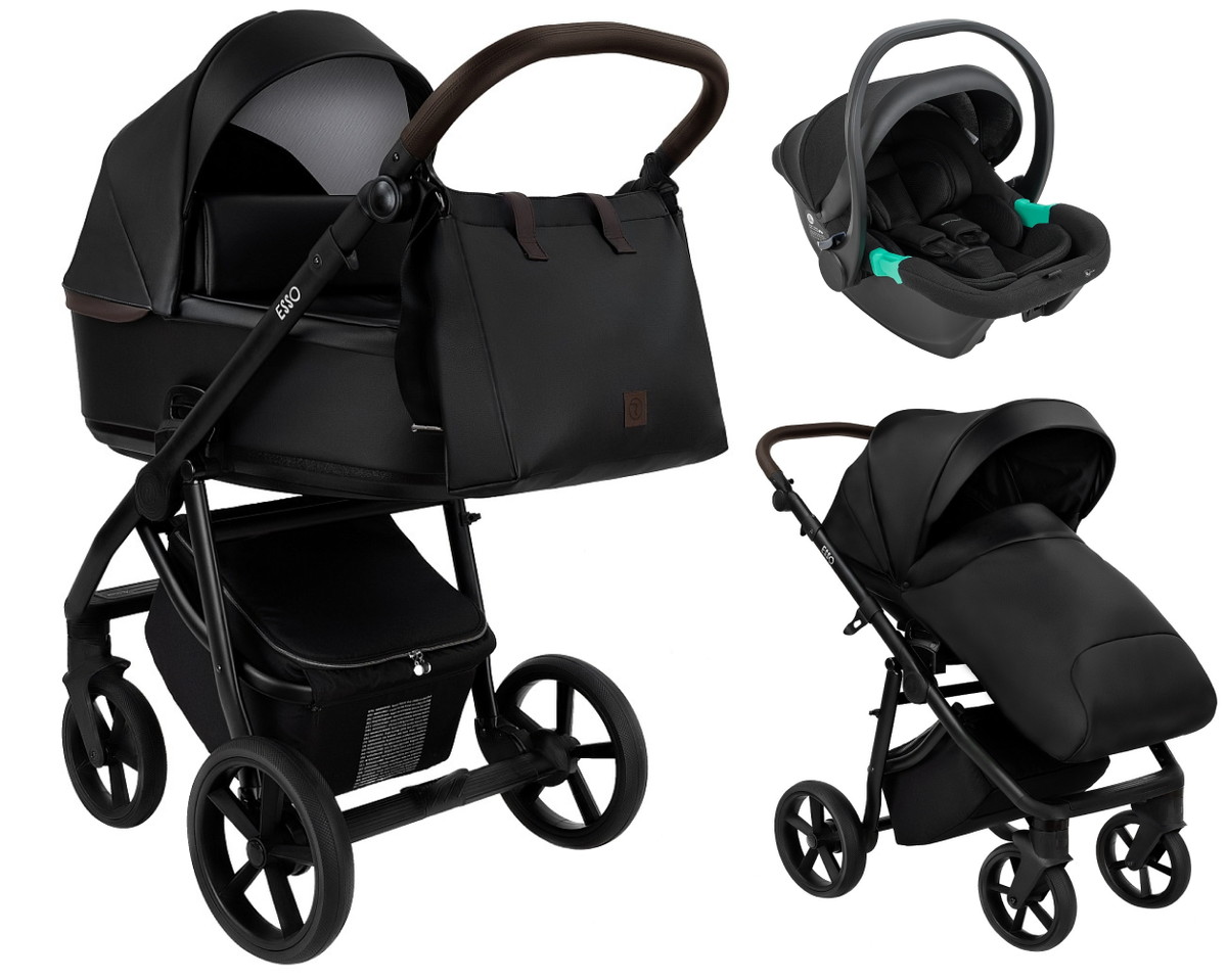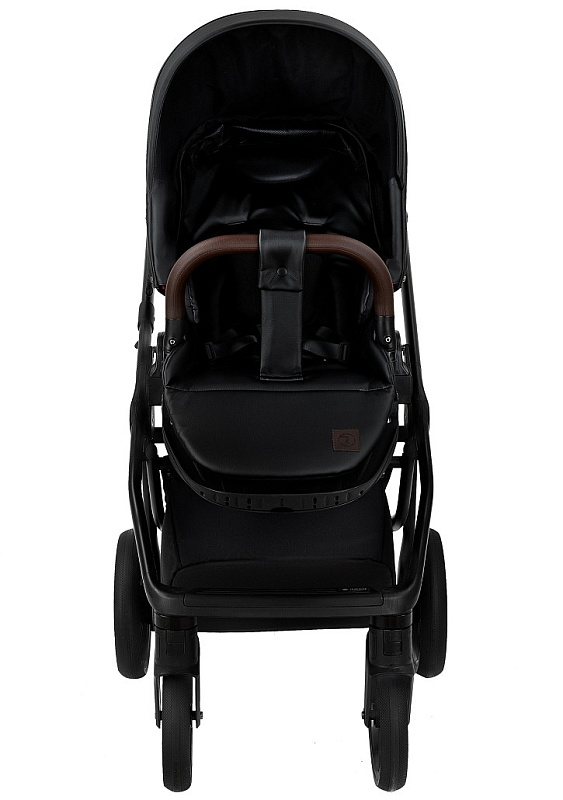 Детская коляска Roan Esso 2025 Кожа 3 в 1 с автокреслом Pituso Santiso Pro ESSK/210/1 Black /Black/руч.Тем.коричневый