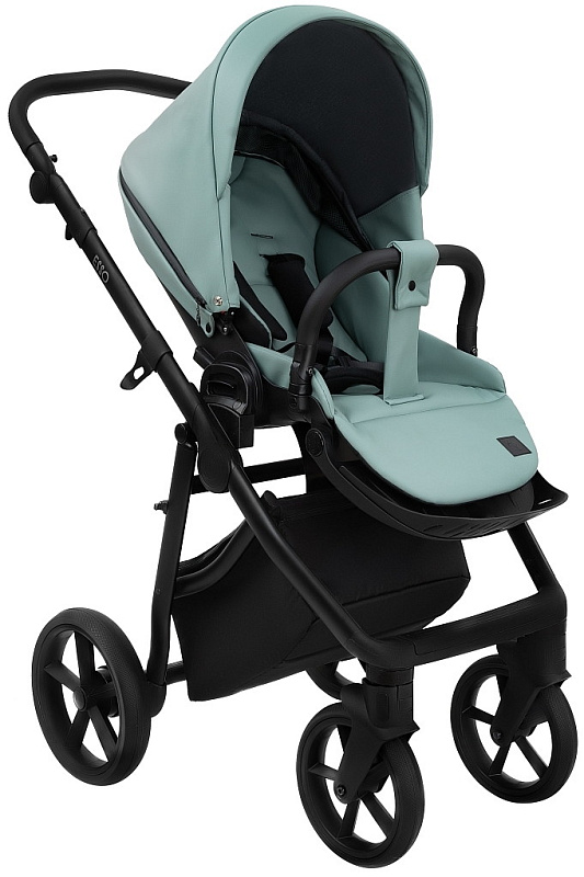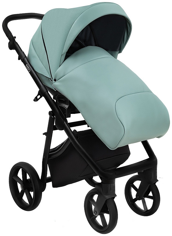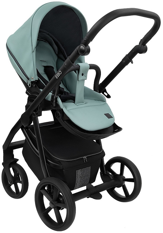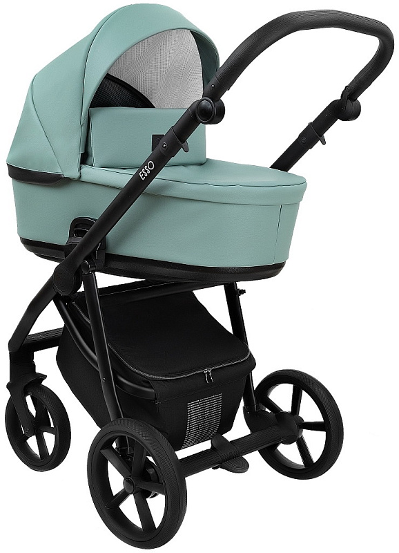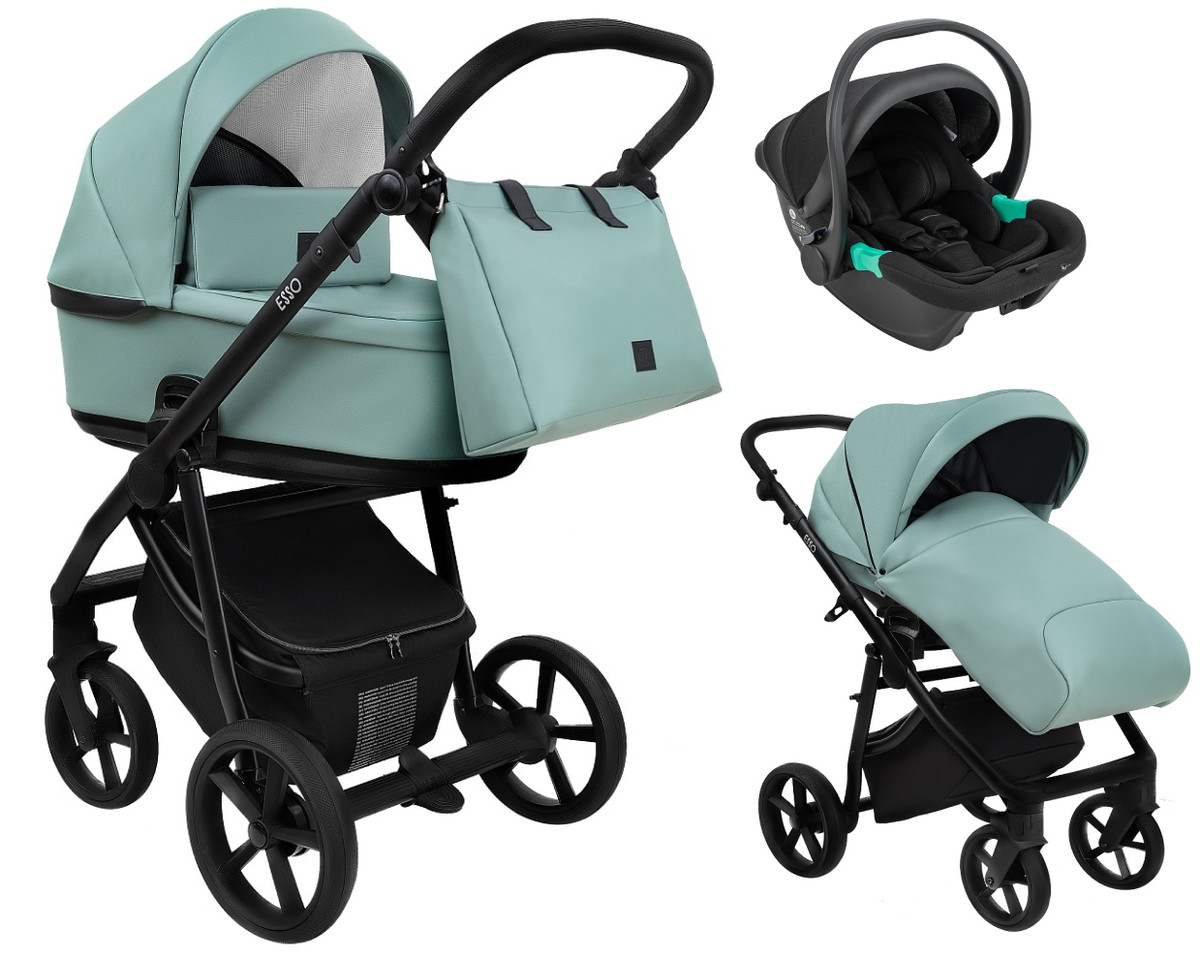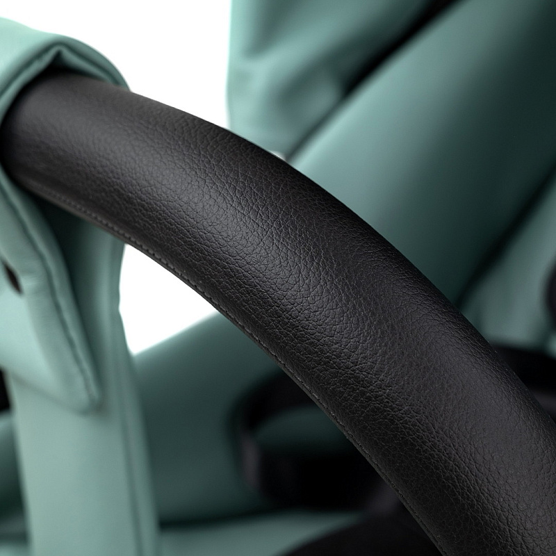 Детская коляска Roan Esso 2025 Кожа 3 в 1 с автокреслом Pituso Santiso Pro ESSK/214/1 Misti Mint/Grey/руч.Черный