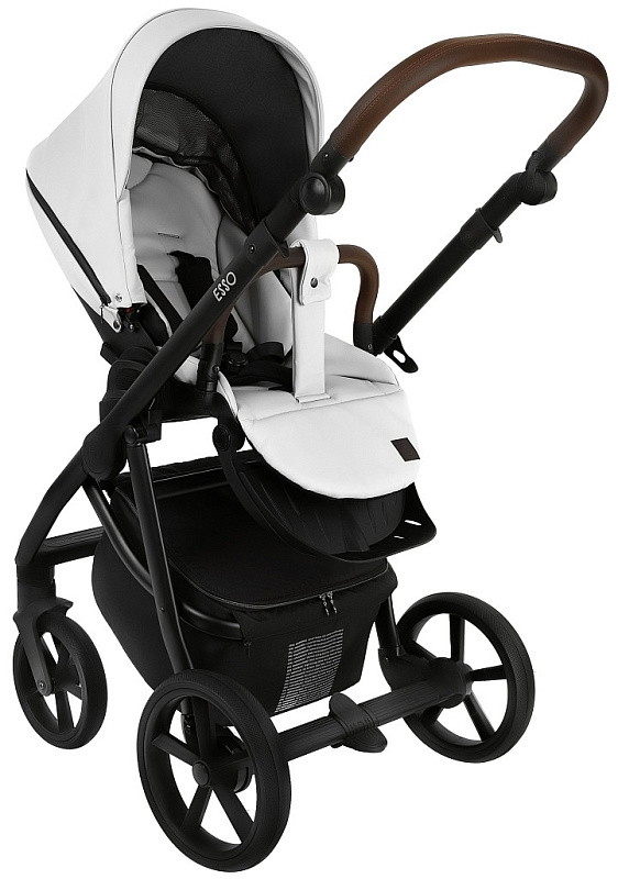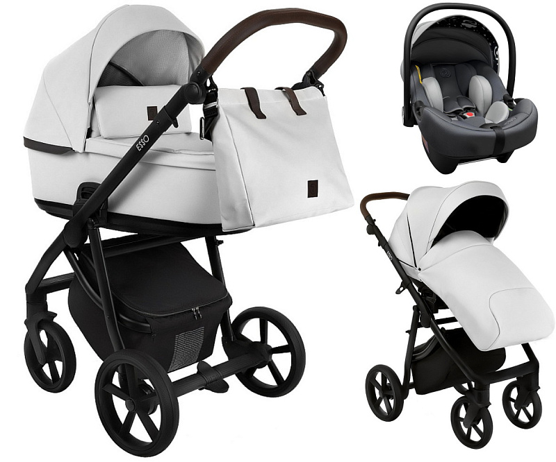 Детская коляска Roan Esso 2025 Кожа 3 в 1 с автокреслом Tutis Elo Lux EduSky Black ESSK/215/1 White/Black/руч.Тем.коричневый