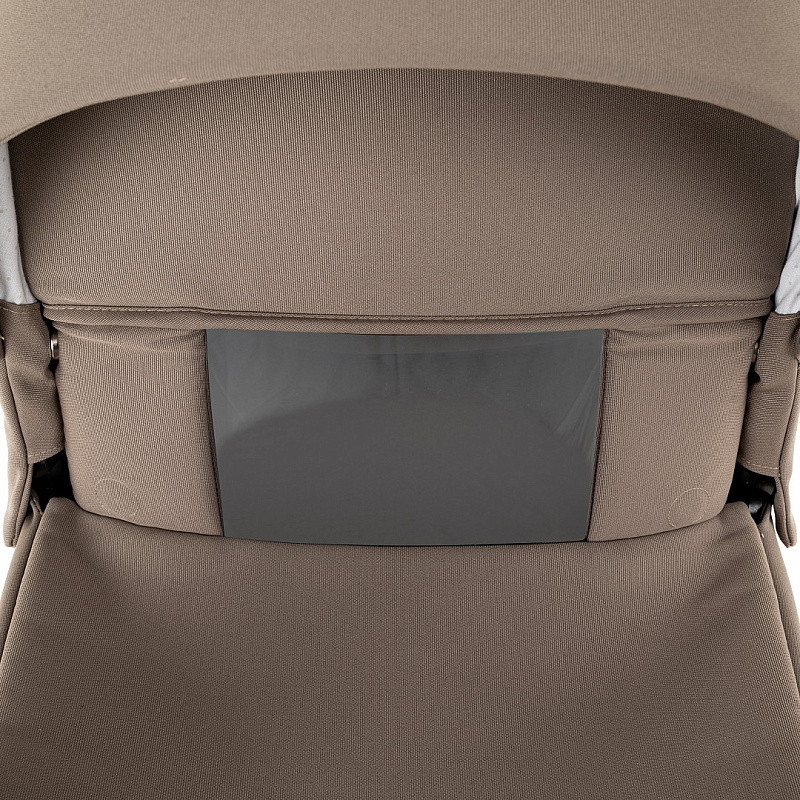 Прогулочный блок имеет отдельный функциональный капор, который можно снять. В капоре есть отсек с антимоскитной сеткой и дополнительный отсек для увеличения покрытия, также есть дополнительный козырёк.