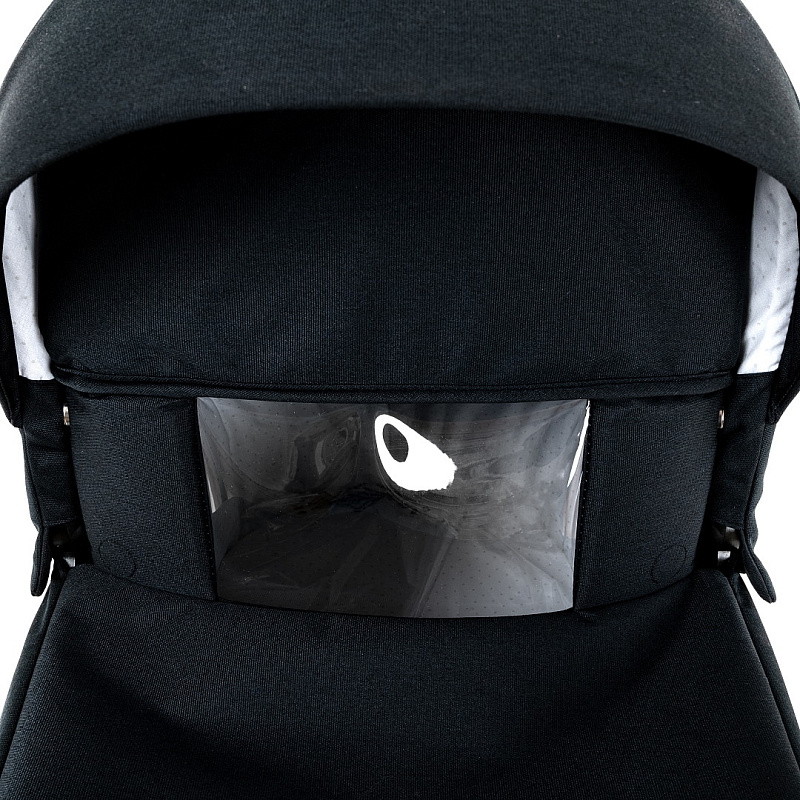 Прогулочный блок имеет отдельный функциональный капор, который можно снять. В капоре есть отсек с антимоскитной сеткой и дополнительный отсек для увеличения покрытия, также есть дополнительный козырёк.