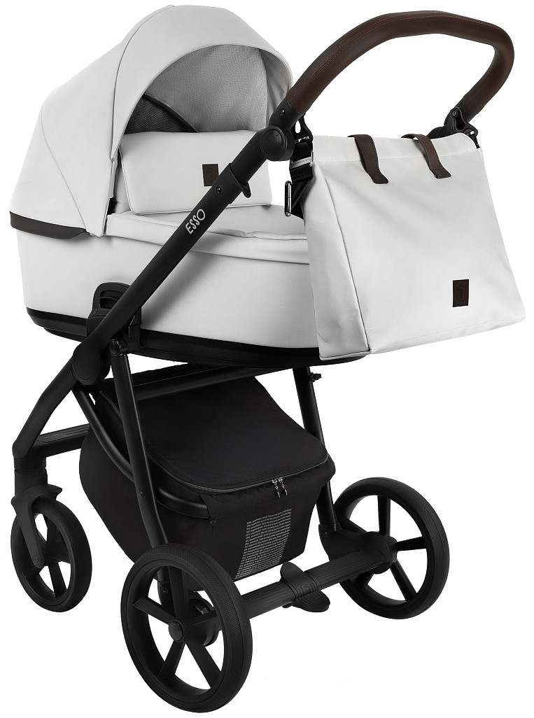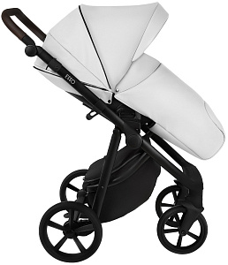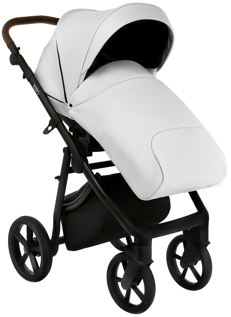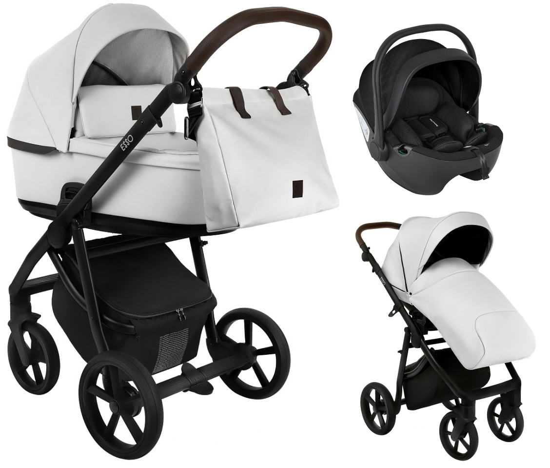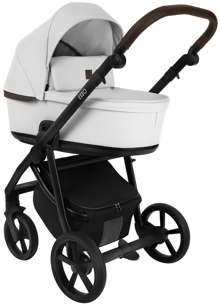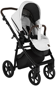 Детская коляска Roan Esso Кожа 3 в 1 с автокреслом Pituso Baesa Pro Black ESSK/215/1  White/Black/руч.Тем.коричневый