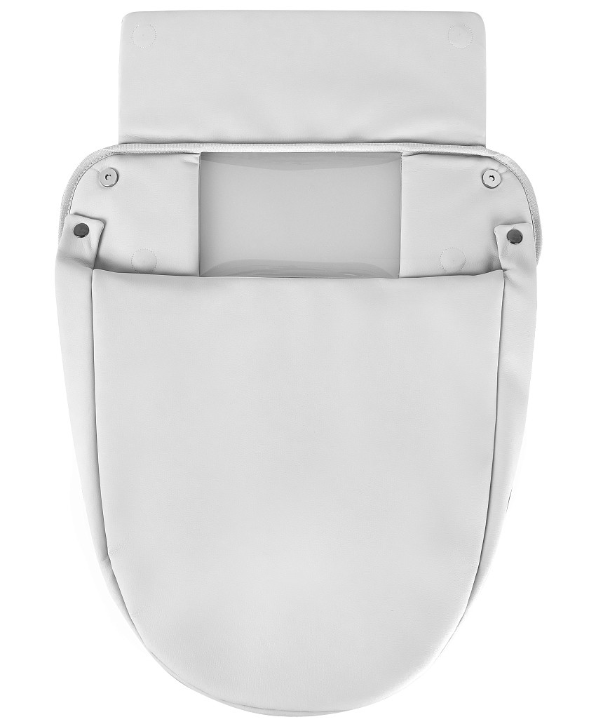 Тёплая накидка на ножки имеет хороший запас по размеру и удобно крепится к прогулочному блоку на кнопках.