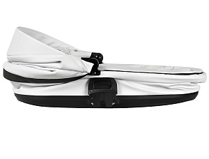 Капюшон (капор) не съемный. Имеет встроенную ручку для переноски люльки. Ручка отцентрована, что позволяет переносить люльку строго горизонтально без перекоса. В капюшоне вшит клин из москитной сетки, закрытый отворотом. Капюшон имеет 2 положения регулировки при помощи двухстороннего кнопочного механизма, внутренняя отделка — 100% хлопок.
