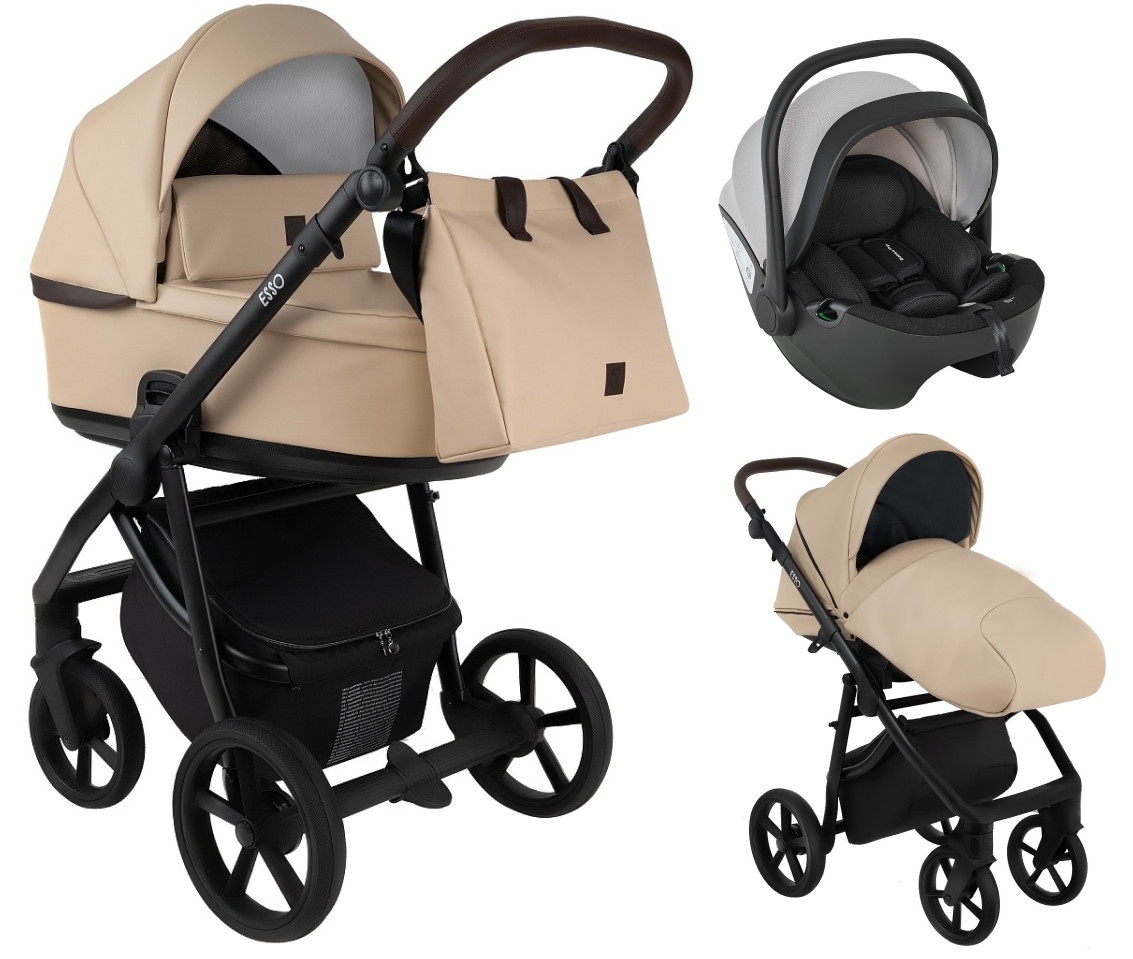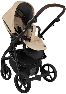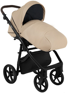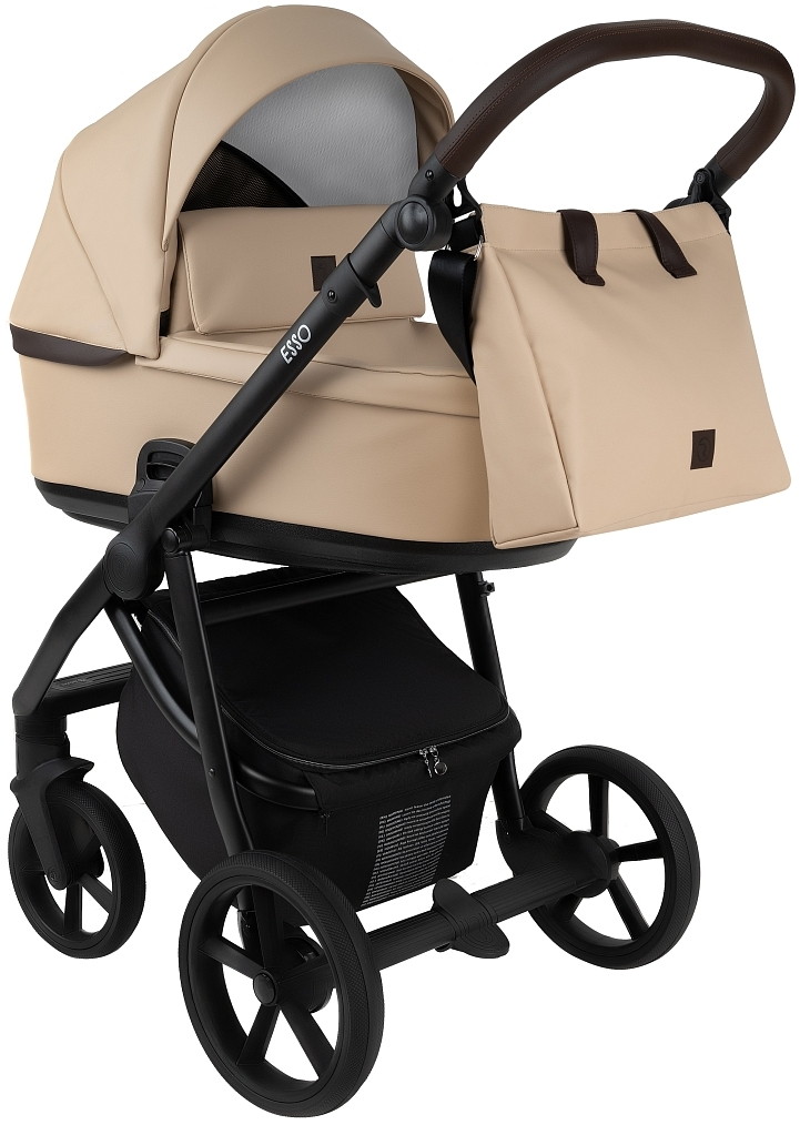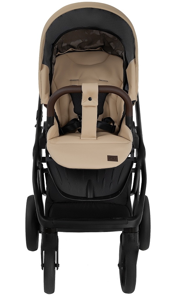 Детская коляска Roan Esso Кожа 3 в 1 с автокреслом Pituso Baesa Pro Black,Beige Canopy ESSK/212/1 Caramel/Black/руч.Тем.коричневый