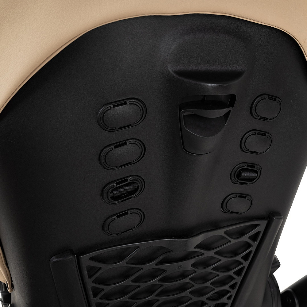 Спинка прогулочного блока откидывается до 175 градусов, имеет 3 положения регулировки. Подножку можно поднять или опустить. Подножка заламинирована, что спасает её от грязи.