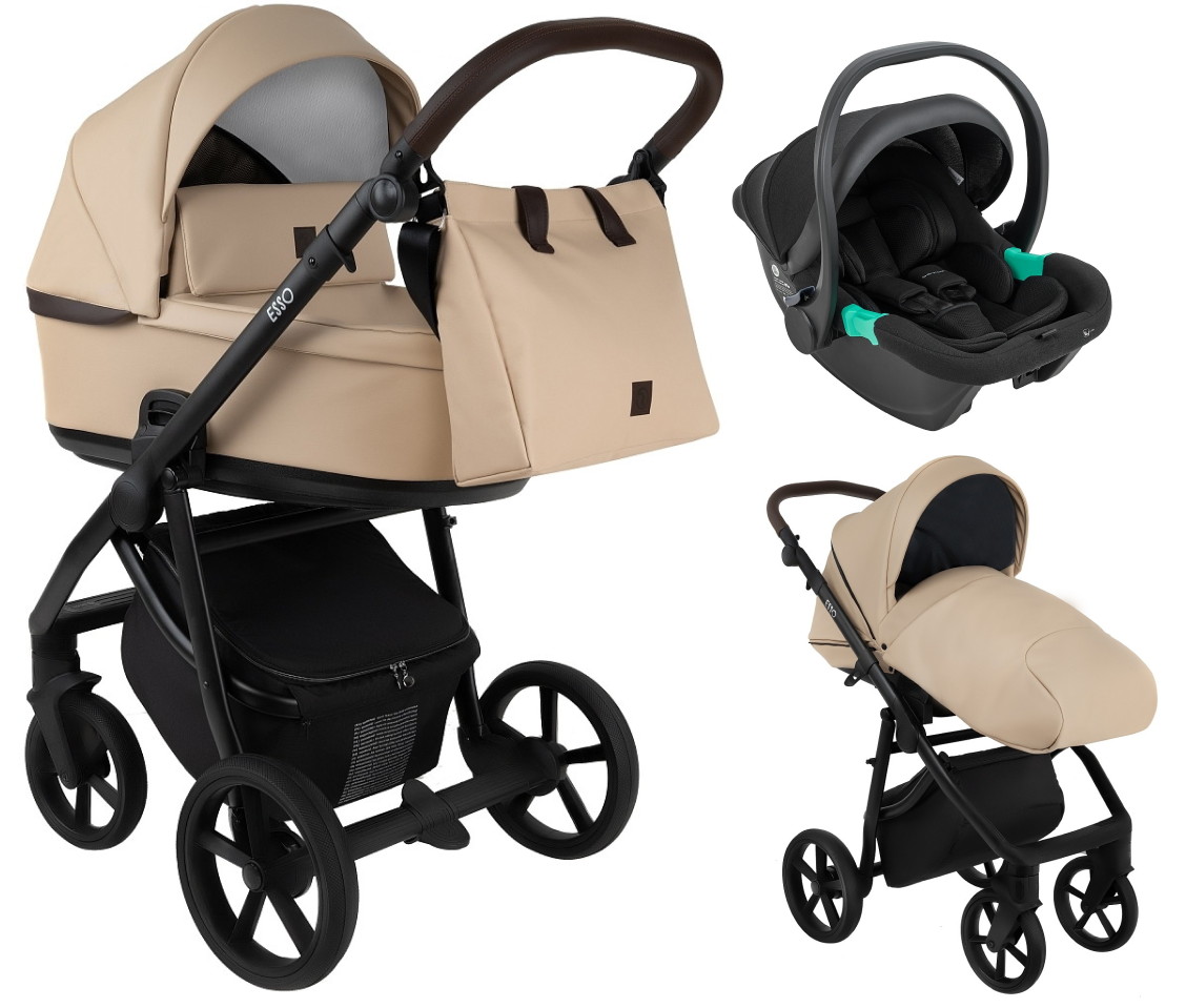 Детская коляска Roan Esso Кожа 3 в 1 с автокреслом Pituso Santiso Pro ESSK/212/1 Caramel/Black/руч.Тем.коричневыйНет оценокХарактеристики