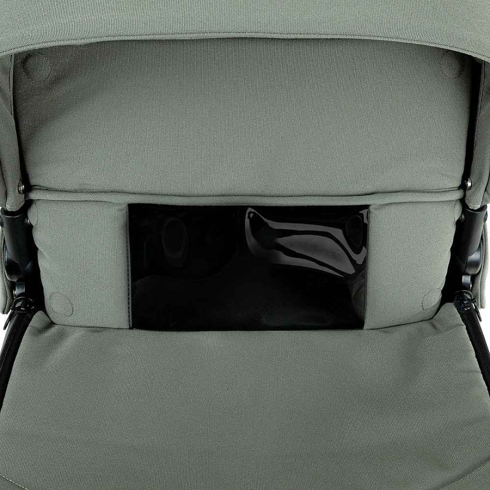 Большая полноразмерная, бескаркасная люлька, предусмотрена глубокая система вентиляции нового поколения «double Air».Отделка внутренней части люльки выполнена из хлопковой натуральной ткани, имеется дополнительный бортик для использования коляски в зимний период. Большой глубокий капор и регулировка капюшона.