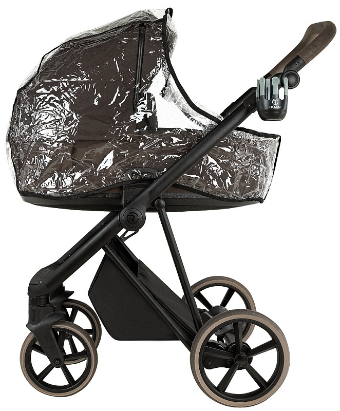 Чехол в люльке имеет отворот со смотровым окошком. Окошко выполнено из морозостойкого силикона. Чехол люльки крепится на магнитах к основанию люльки. Такой способ – это уникальная новая система крепления чехла от производителя колясок ROAN. Такой способ крепления позволяет моментально закрепить или снять чехол с люльки.