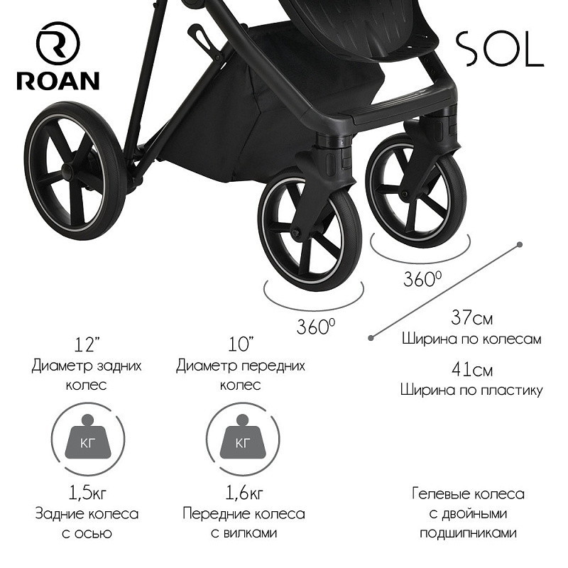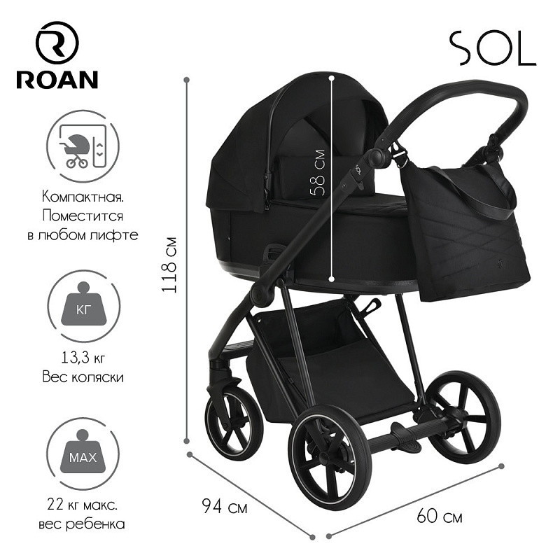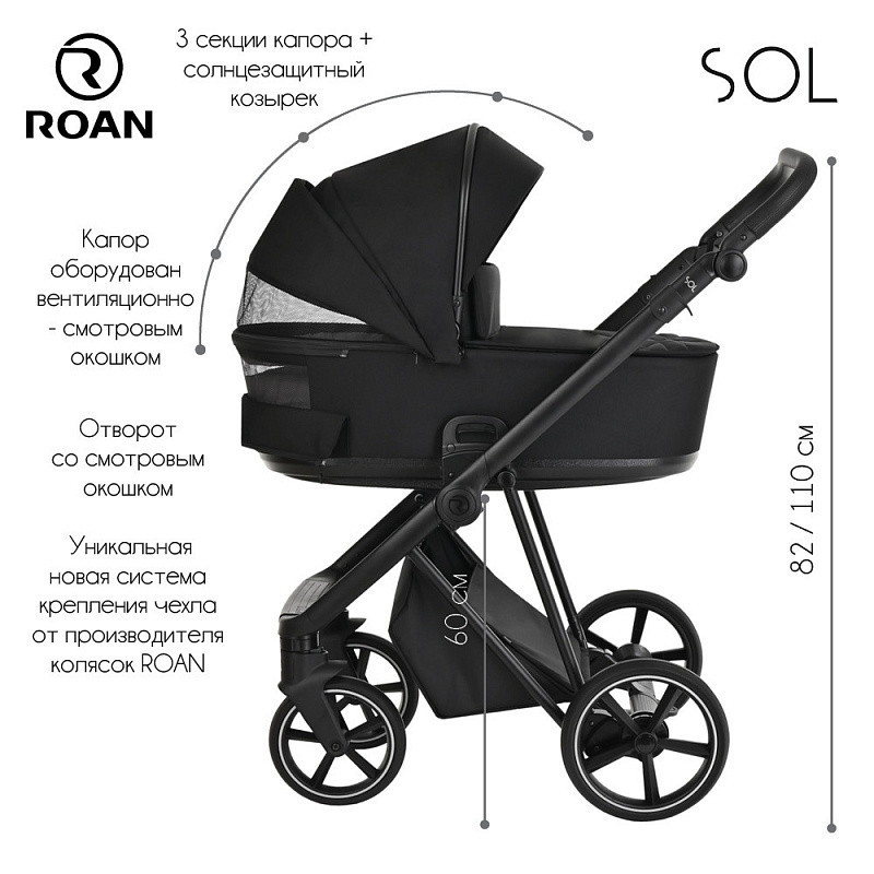 Многофункциональная модульная коляска Roan SOL– это детская коляска высокого качества в идеальном исполнении, которое заметно с первого взгляда.