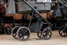 Конструкция рамы имеет амортизатор, специально разработанный для данной модели коляски, который компенсирует неровности дорожного покрытия и делает ход коляски плавным.